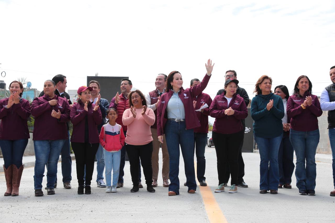 Como parte de la gira de entrega de obras, la alcaldesa estuvo en la colonia Francisco Villa, donde entregó la pavimentación con concreto hidráulico de la calle Adelitas entre