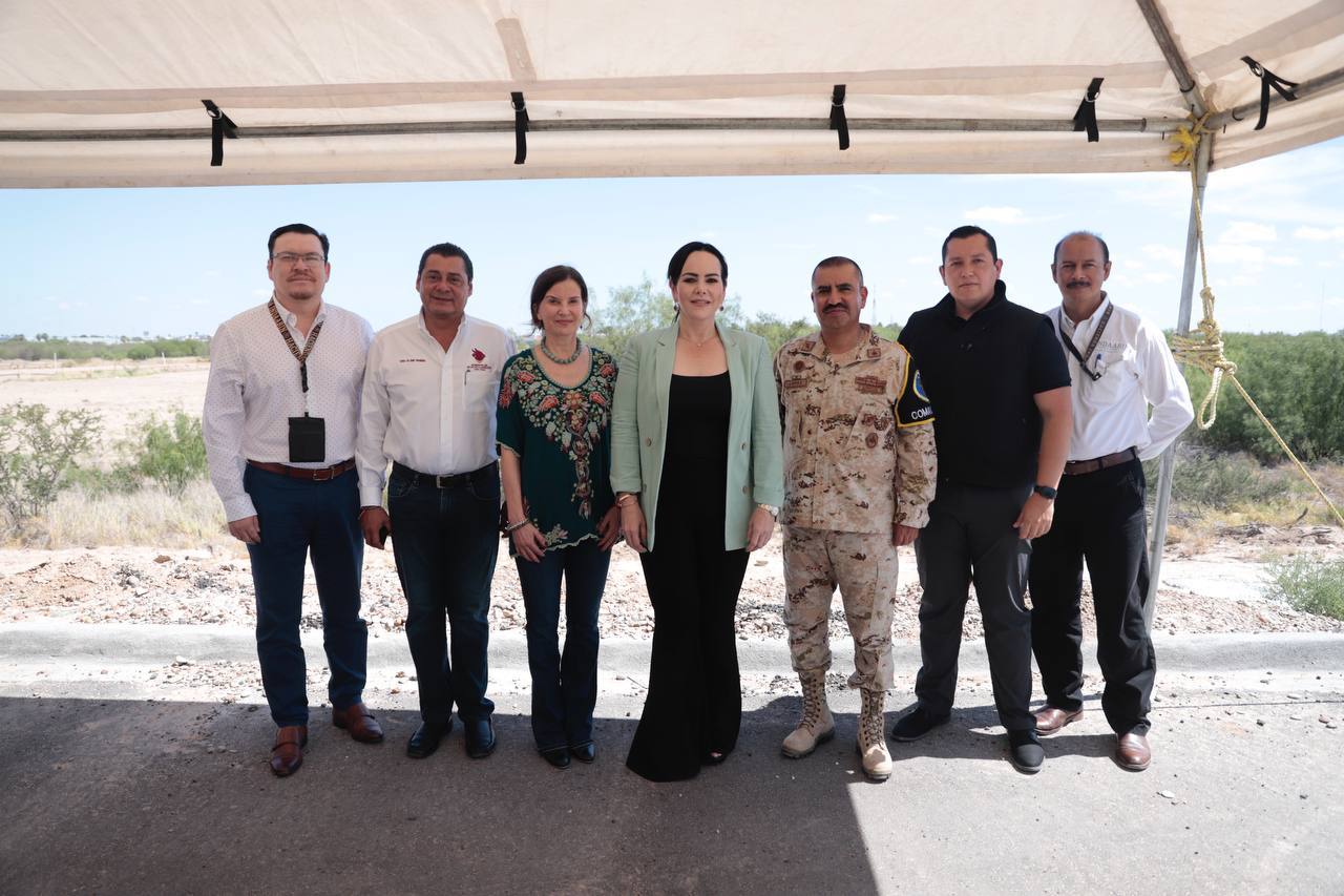 La alcaldesa Carmen Lilia Canturosas Villarreal, junto con funcionarios de la SEDENA, la Agencia